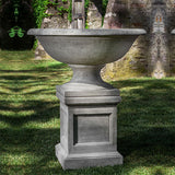 The Campania International Monteros Urn Planter requires placement on a solid, level surface, such as concrete or stone, capable of supporting its 535-pound weight. It arrives as a single piece, requiring professional assistance or equipment (e.g., a hand truck) for placement due to its weight. No assembly is needed, but an optional St. Louis Pedestal can be used for elevation (sold separately). The package includes installation instructions and a care guide, detailing placement and maintenance, including winterization to protect against freezing. In cold climates, raise the planter off the ground using shims or risers to ensure drainage, and if unplanted, turn it upside down and cover with burlap or an absorbent material (e.g., an old towel) wrapped with dark plastic to prevent water accumulation and cracking. Clean with a mild dish detergent (e.g., Dawn) and a soft cloth or brush, avoiding abrasive cleaners or pressure washing.